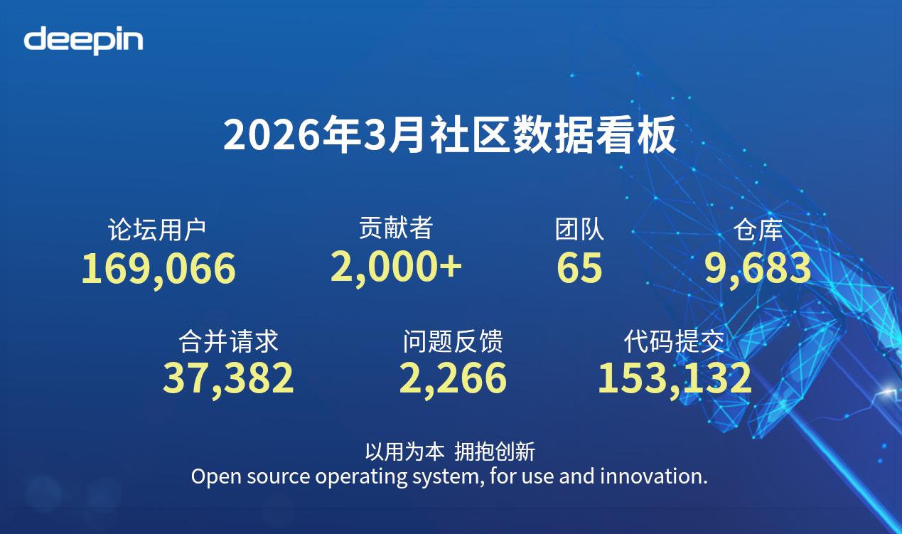 以上就是 deepin 社区 2026年3月月报的全部内容。如果你对 deepin 社区的工作有任何的意见和建议,欢迎前往deepin论坛 反馈,感谢大家的支持~