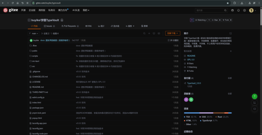 项目代码仓库:https://gitee.com/buyike/typevault