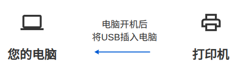 启动打印机,将 USB 线插入电脑; -