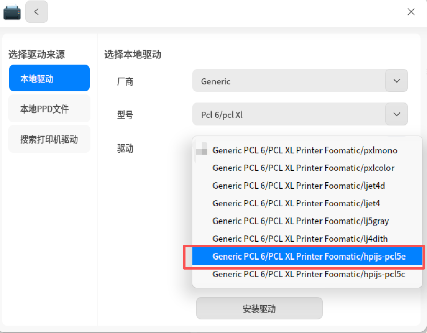 若系统未能自动识别你的打印机(自动搜索失败时),可前往「统信打印机驱动下载平台」手动下载安装对应驱动,安装驱动后再参考场景一、二进行安装。