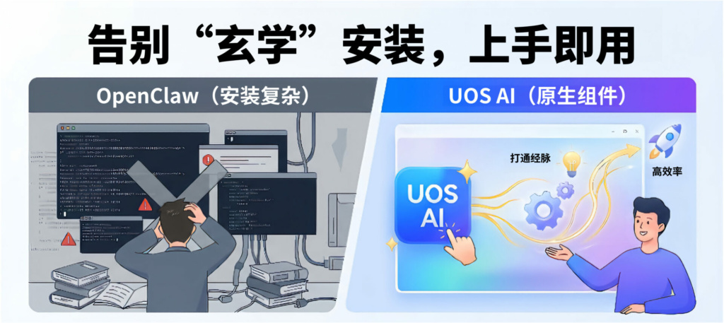 当然不是!新版 UOS AI 2.13.605 带来了属于我们自己系统级原生“Claw”模式。相比于需要一定技术基础的通用 Claw 方案,UOS AI 用三大核心优势,告诉你什么才是真正的“开箱即用”。